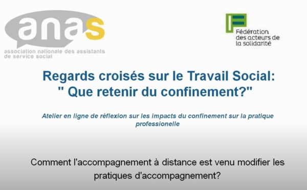 Intervenir à distance, vers une nouvelle proximité Afin d’outiller les intervenants sociaux dans leurs pratiques professionnelles en cette période de réaménagements nombreux, la fédération des acteurs de la solidarité et l'ANAS se sont associées pour élaborer des mini conférences de témoignages en ligne sur des sujets clés et pour lesquels intervenants sociaux de tous métiers ont dû s’adapter, innover et faire évoluer leur pratiques. L’idée générale est de se poser ensemble la question de ce...