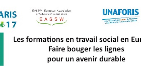 1ère Conférence Européenne EASSW‐UNAFORIS Paris, 27 / 29 juin 2017 L’Association européenne des écoles de travail social, EASSW, et l’Union nationale des acteurs de formation et de recherche en intervention sociale, UNAFORIS, organisent la Conférence européenne PARIS 2017, sous le haut patronage de l’UNESCO, sur le thème : Les formations en travail social en Europe : Faire bouger les lignes pour un avenir durable à l’Université Paris Descartes, Paris, France ...